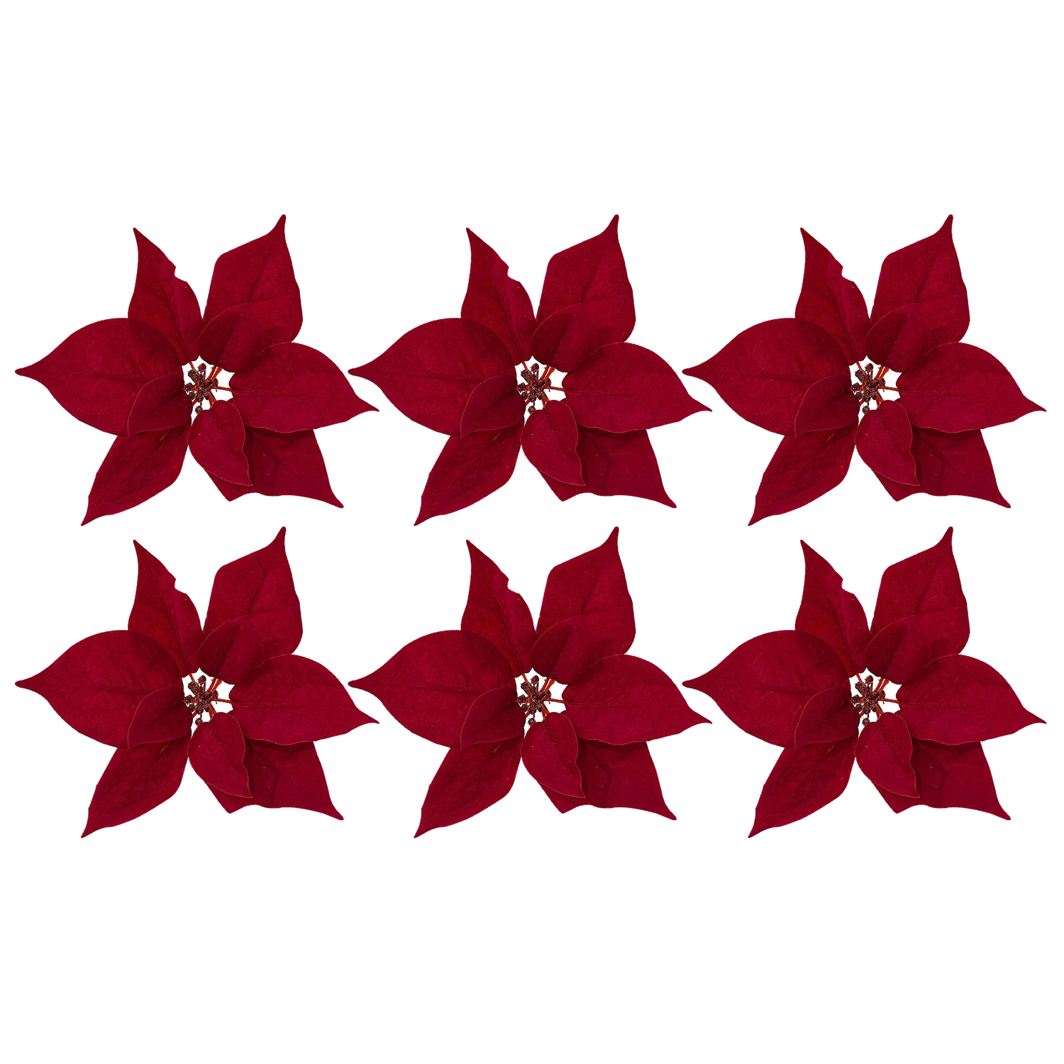 Published 10th October 2025 at 1500 × 1500 in Pack of 6 Clip-On Poinsettia Flower Christmas Decorations – RED