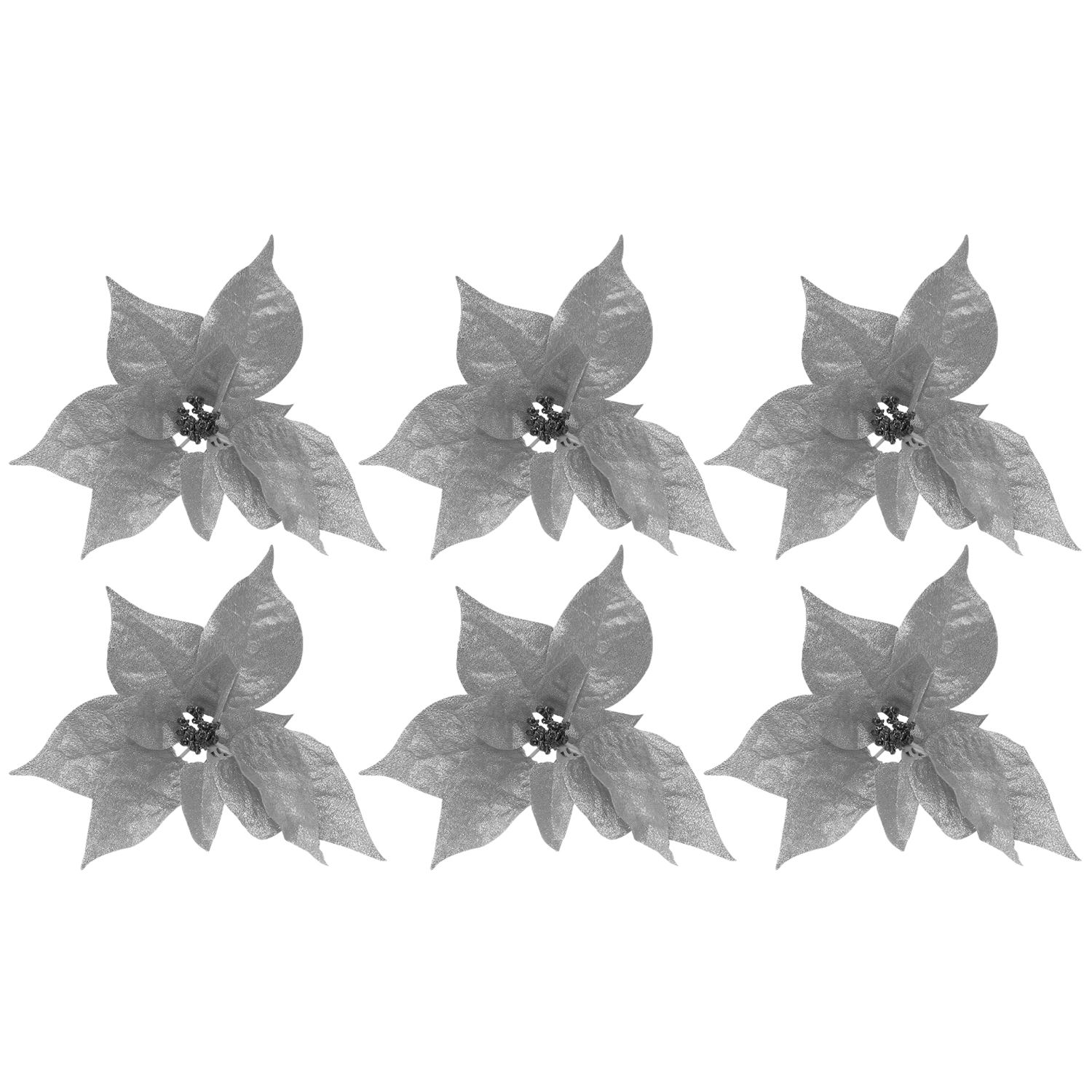 B3 Published 10th October 2025 at 1500 × 1500 in Pack of 6 Clip-On Poinsettia Flower Christmas Decorations – SILVER