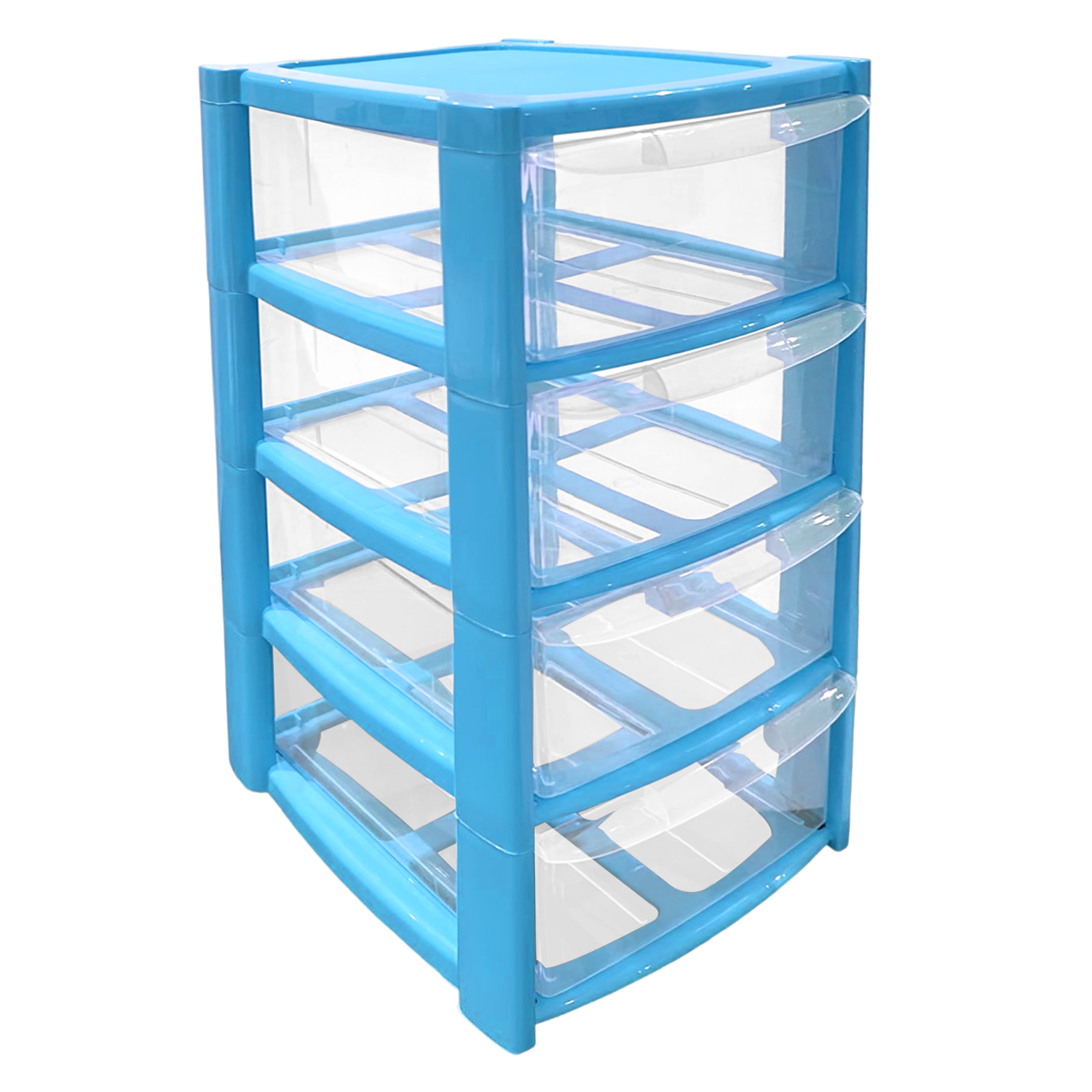 2 Published 11th February 2026 at 1500 × 1500 in Mini 4 Drawer Plastic Storage Tower – Clear Drawers with Pink or Baby Blue Frame by STASH’D – Blue