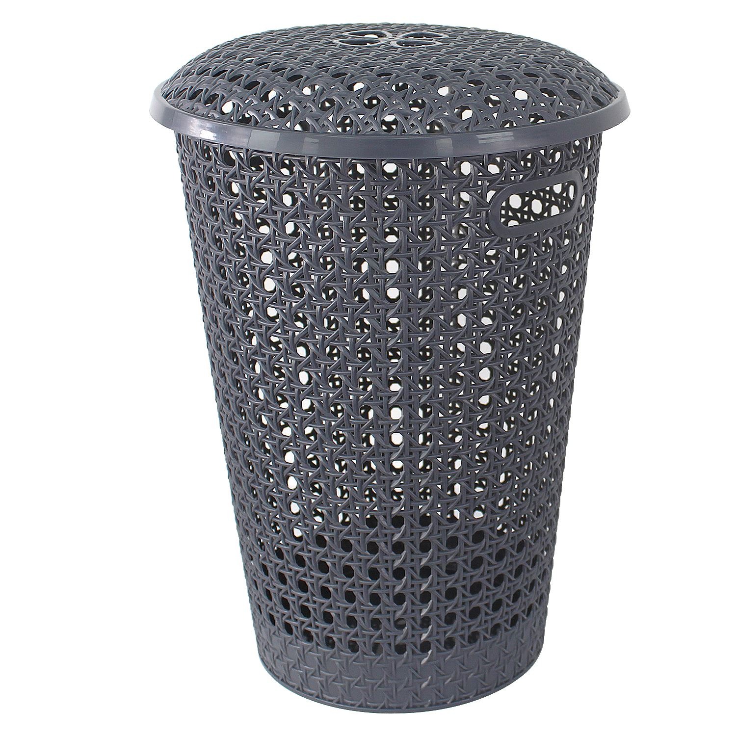 e819fb99-5939-4475-87bc-9ab8da28 Published 11th February 2026 at 1500 × 1500 in 48L Round Laundry Basket with Lid & Handles – Plastic Rattan Effect Hamper (White & Grey) – Grey