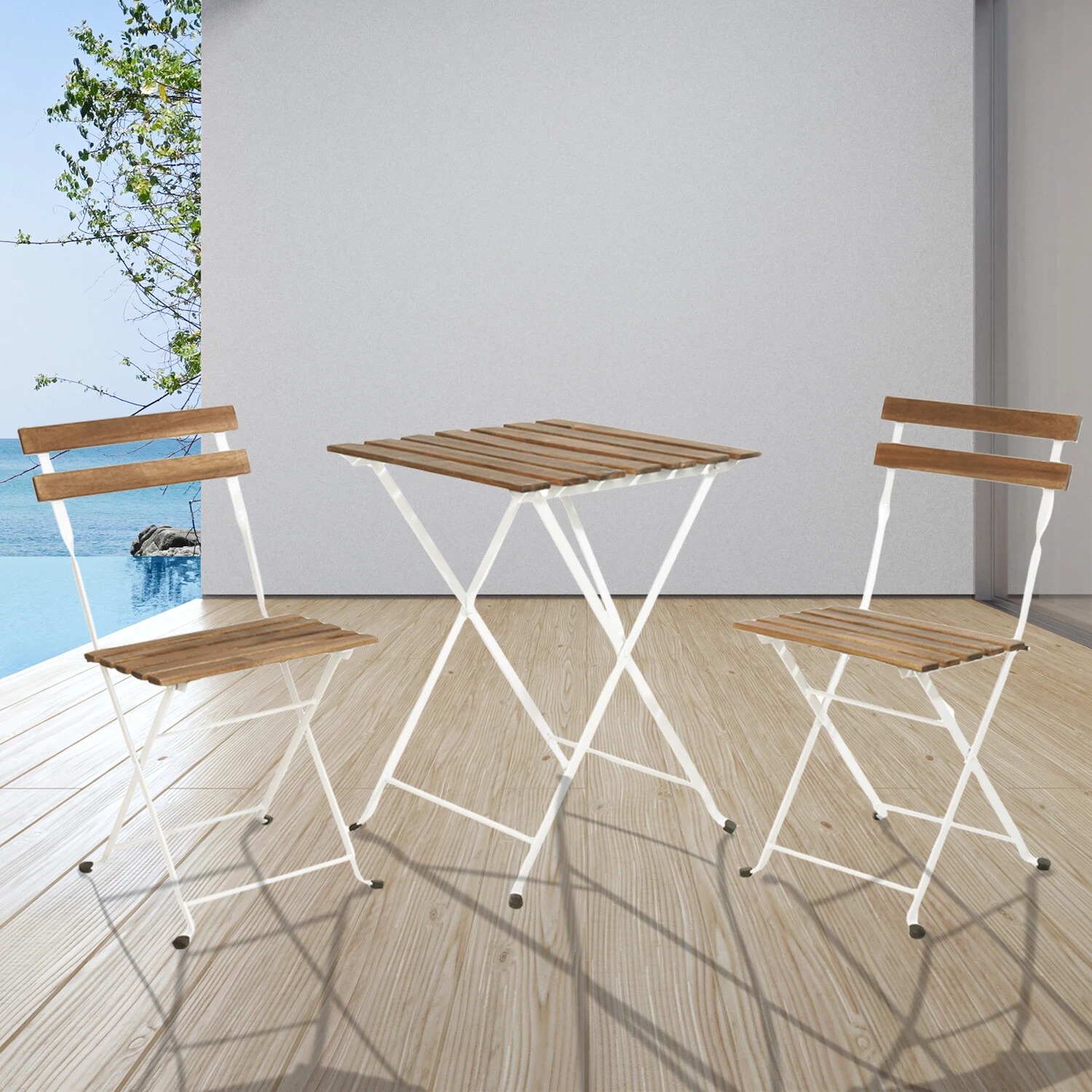 Published 11th February 2026 at 1500 × 1500 in 3 Piece Foldable Garden Bistro Set – Wood & White Metal