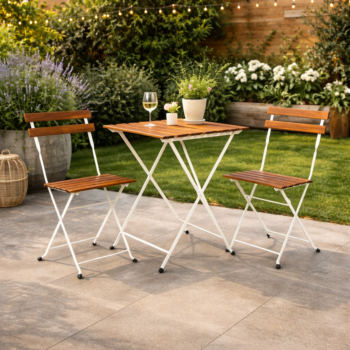 • 3 Piece Bistro Set – Includes 1 x Foldable Table & 2 x Matching Chairs