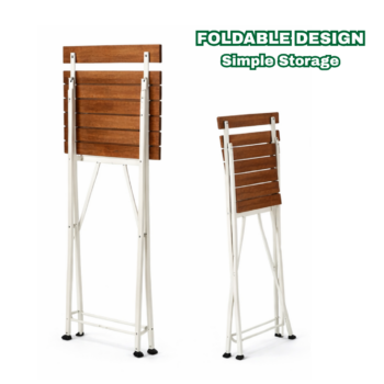 Crafted from smooth brown wood paired with sturdy white metal legs, this set blends timeless style with reliable strength. The foldable design ensures quick setup and effortless storage, making it ideal for seasonal use or compact outdoor areas.