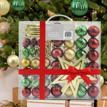 Assorted Sizes: The baubles and decorations come in various sizes, enhancing the decorative appeal and creating a balanced look.