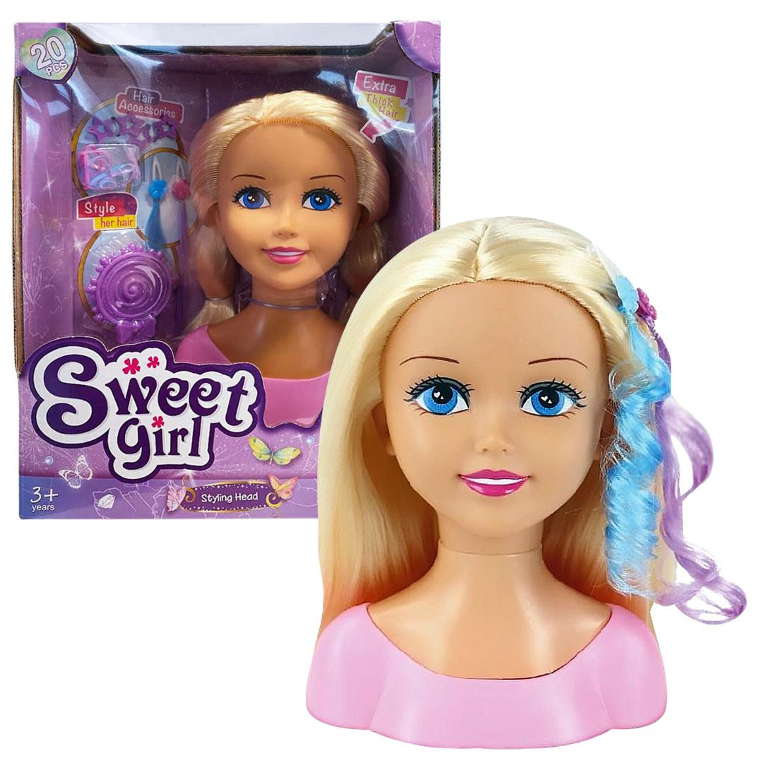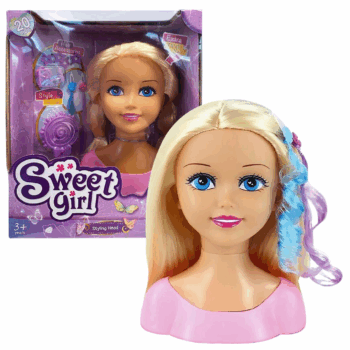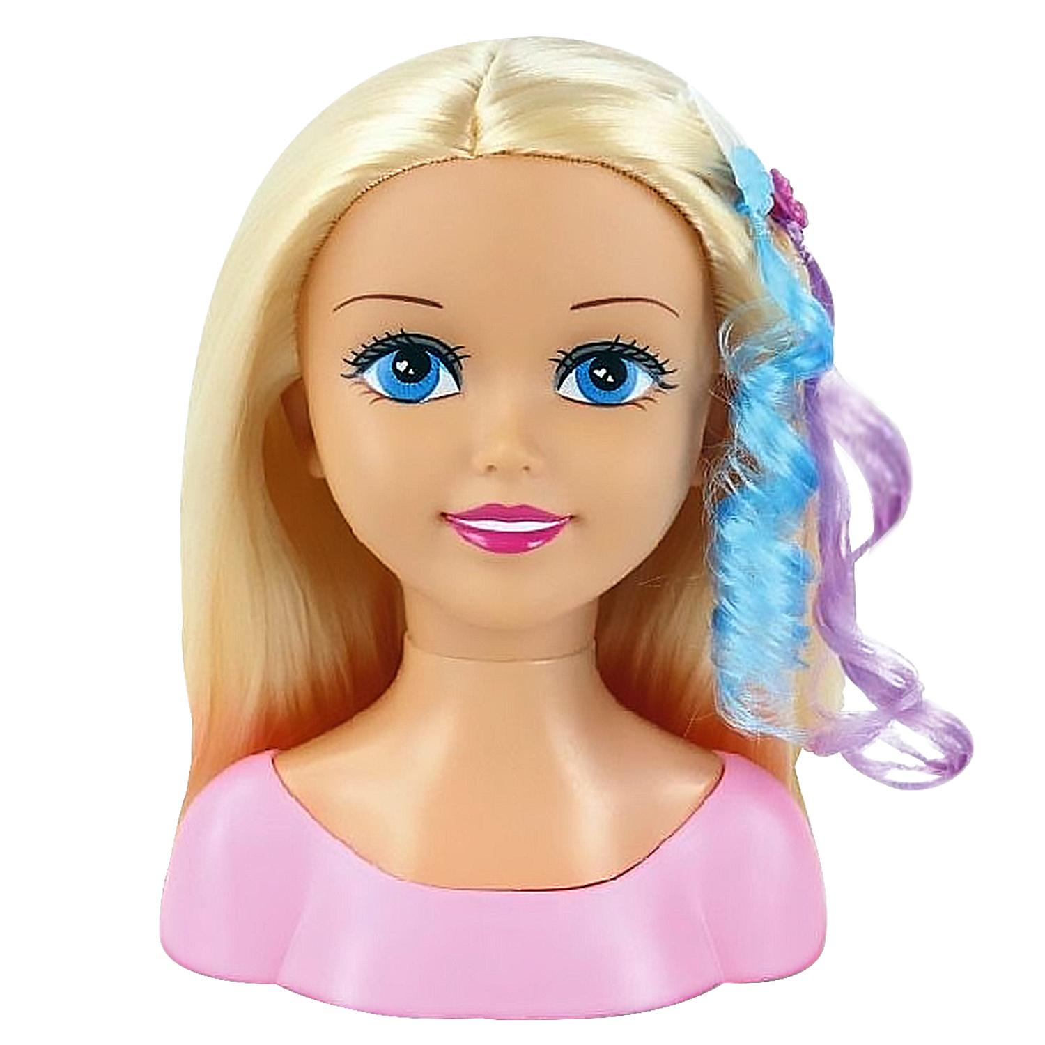 This styling head features thick, long blond hair and comes with a variety of hair accessories, allowing kids to experiment with endless styles and practice their hairdressing skills.