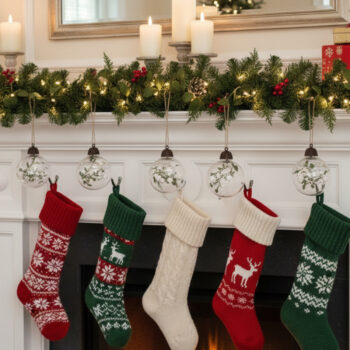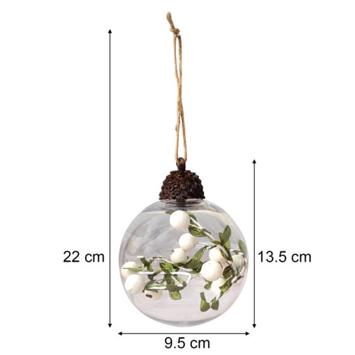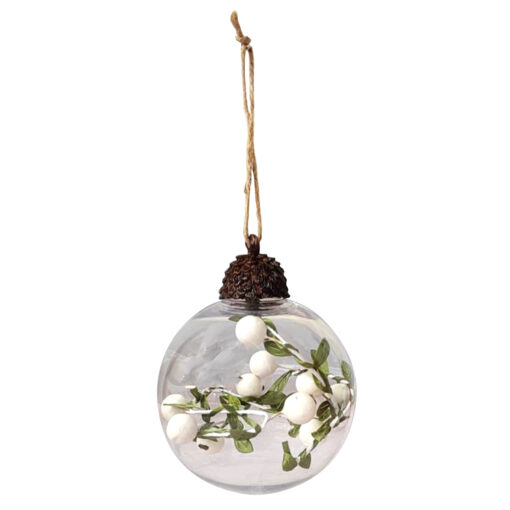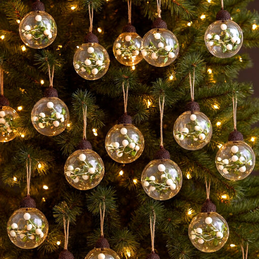 Greenery, sparkle, and holiday cheer—foliage baubles bring Christmas near.