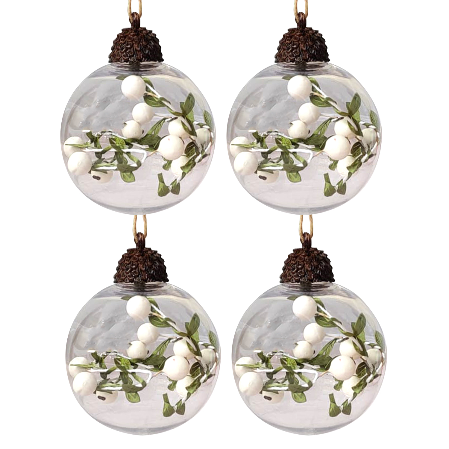 Pack of 4 Foliage Christmas Baubles – Nature-Inspired Festive Tree Decorations