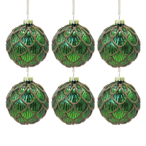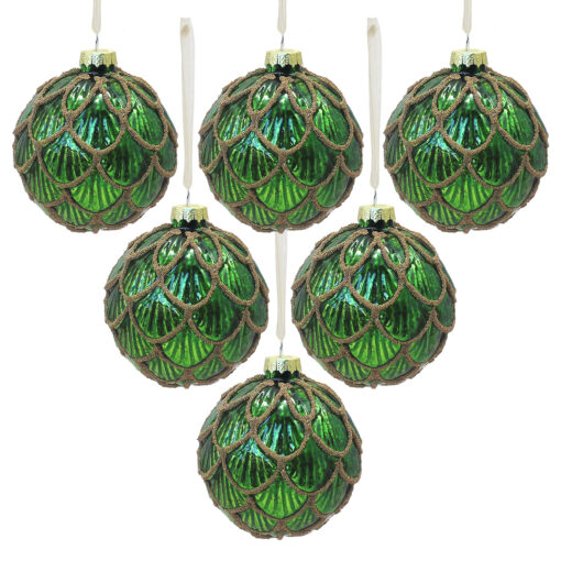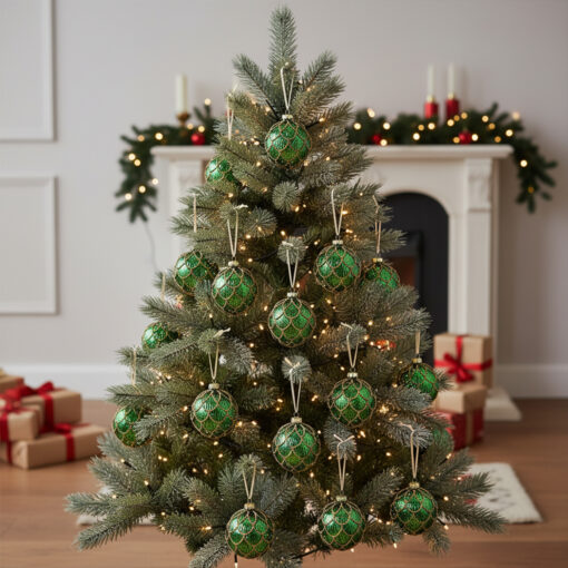 Pack of 6 Green Christmas Baubles – Emerald Charm for Tree Decorations