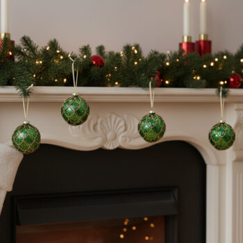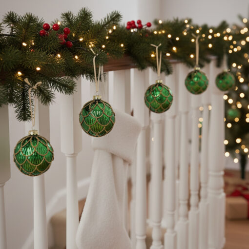 Gleam, glow, and spread good cheer—emerald baubles make Christmas near.