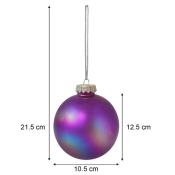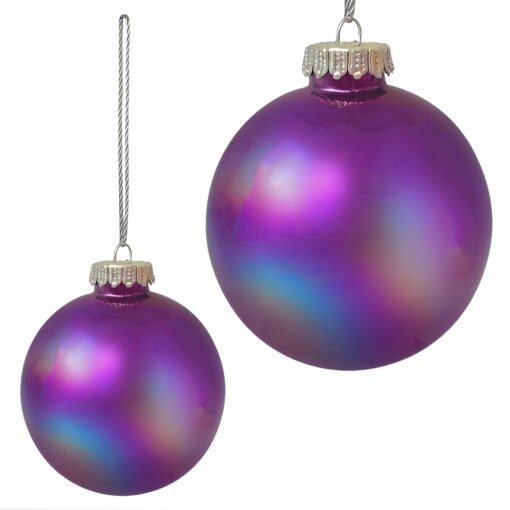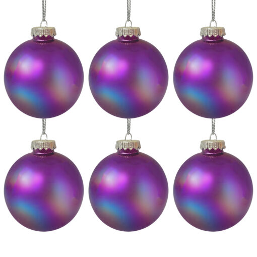 Pack of 6 Purple Iridescent Glass Christmas Baubles