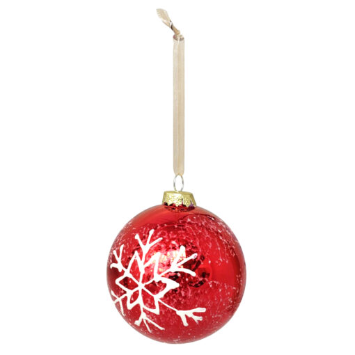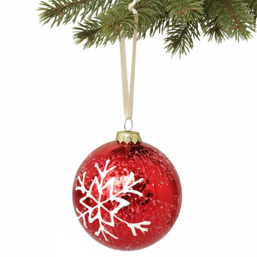 Elegant design – Red glass baubles with delicate white snowflake detailing