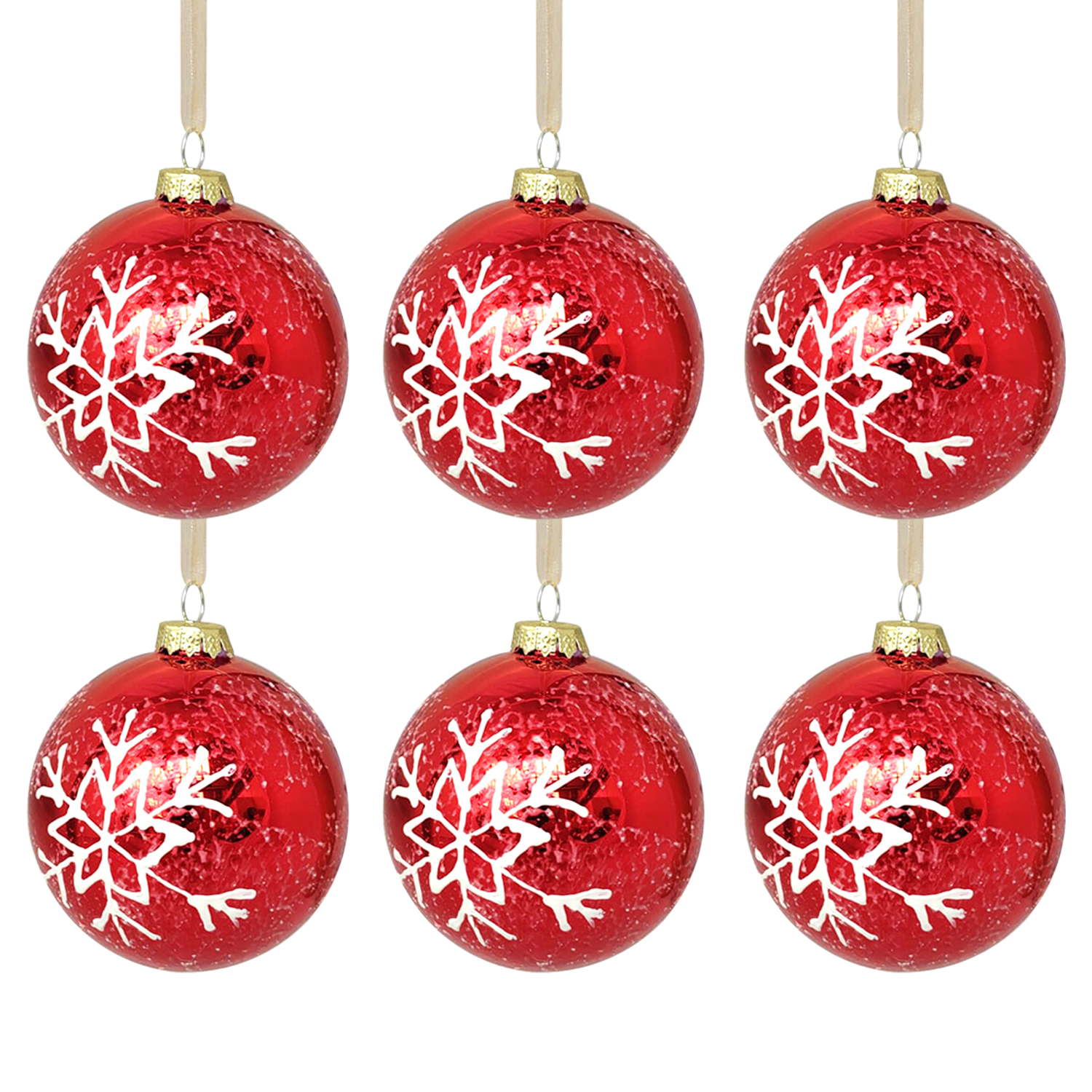 Pack of 6 Red Glass Snowflake Christmas Baubles – Snowflake Magic for Tree Decorations