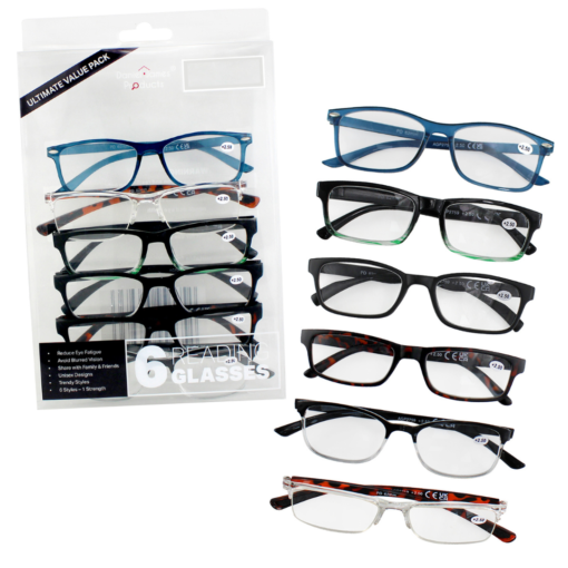 Pack contains 6 Pairs of Reading Glasses, each designed to provide a perfect blend of style and functionality.