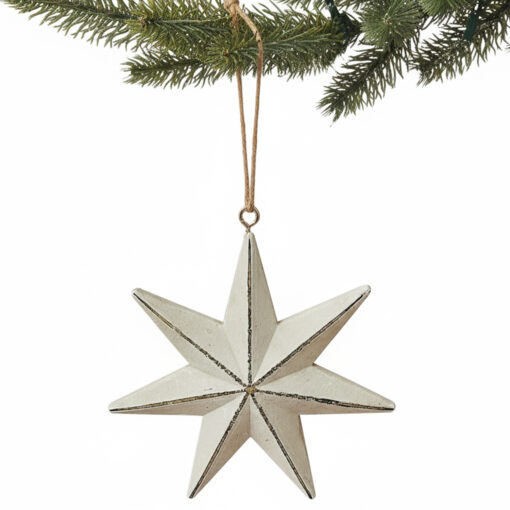 Pack of 6 Wooden White Star Christmas Decorations – Elegance for Christmas