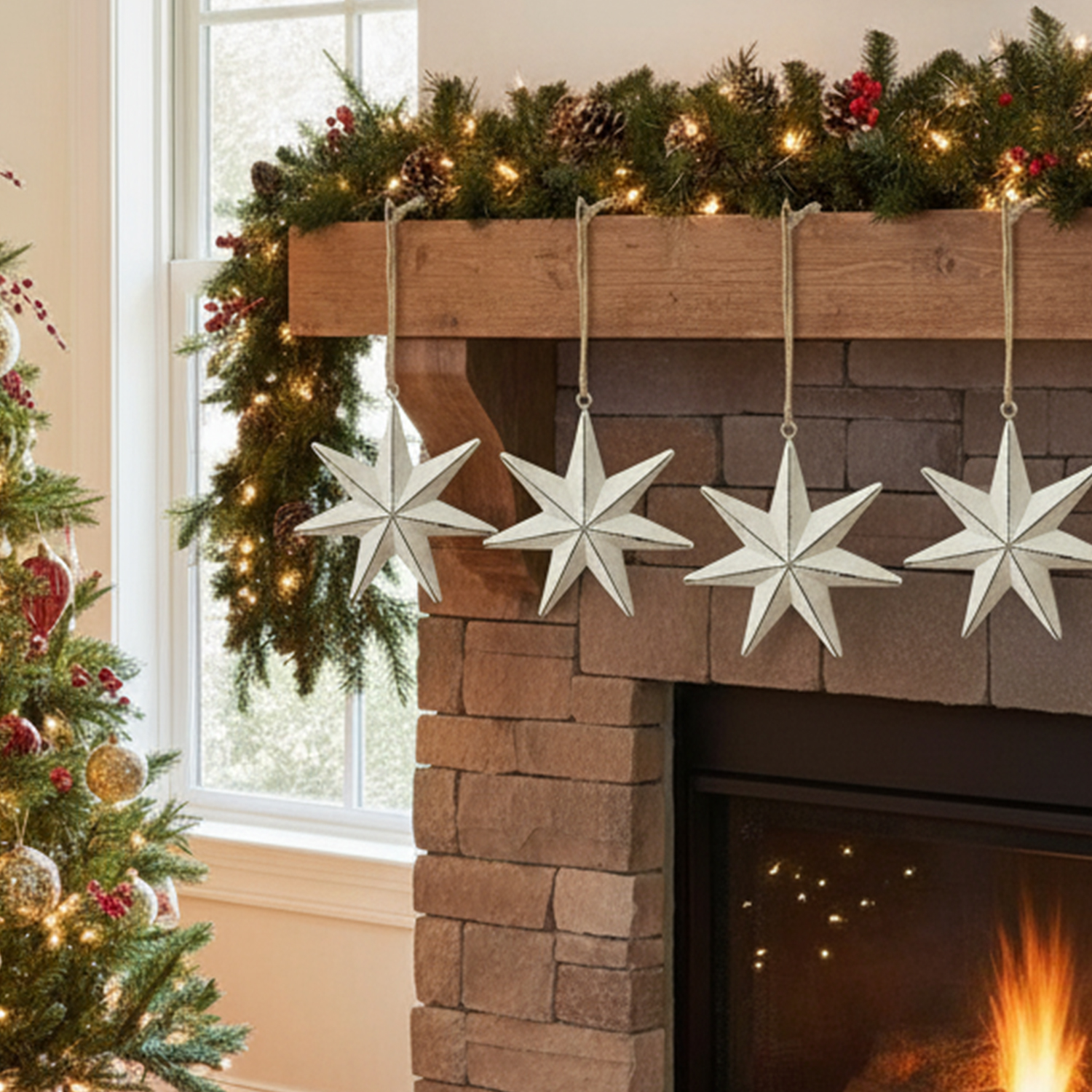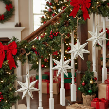 Shine bright and spread good cheer—wooden stars make Christmas near.