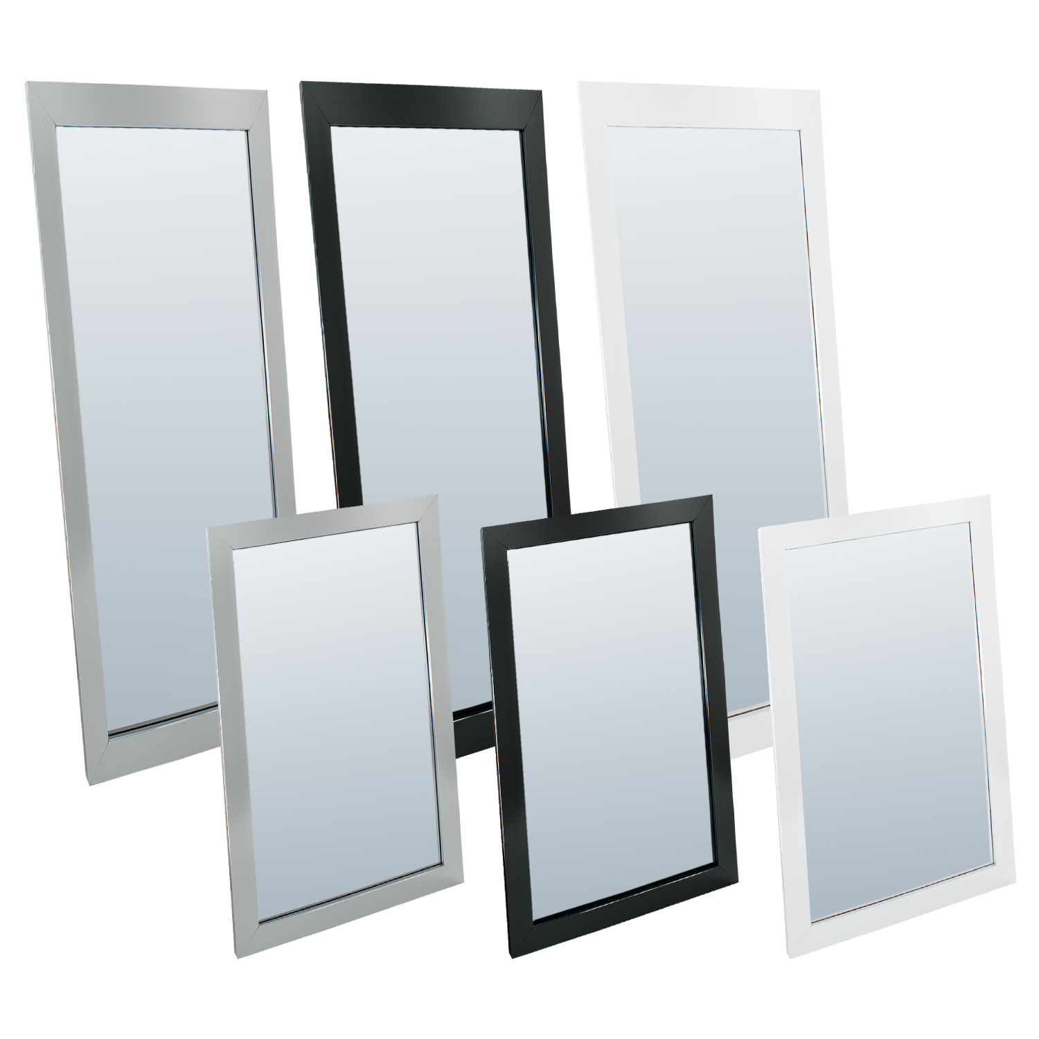 Stunning, modern black, white or silver frame. The long wall mirror will add style and character to any room from the living room to the bedroom, or even in the Bathroom.